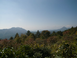 7A〜8A間のトレイルのピーク付近、硯石からの眺め。右側の尖った山は一夜山、展望はすばらしいようだ。