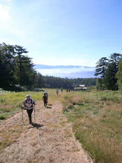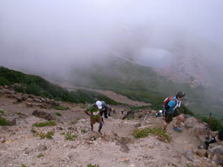 三の池からの上り返しを登りきったところから三の池を眺める。150m近い標高をわずか200mほどの水平距離で一気に上る。3/4勾配として角度を計算すると約37°!スキー場の上級者コースでも特に急な所と同等かそれ以上の勾配だ。