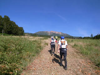 スキー場から眺める御嶽山。雲一つない空にどっしりと構える。あの山に登るのはもちろん大変であるが、お鉢巡りがさらに大変であることを初めてこの大会に出るランナーは知る由もない。
