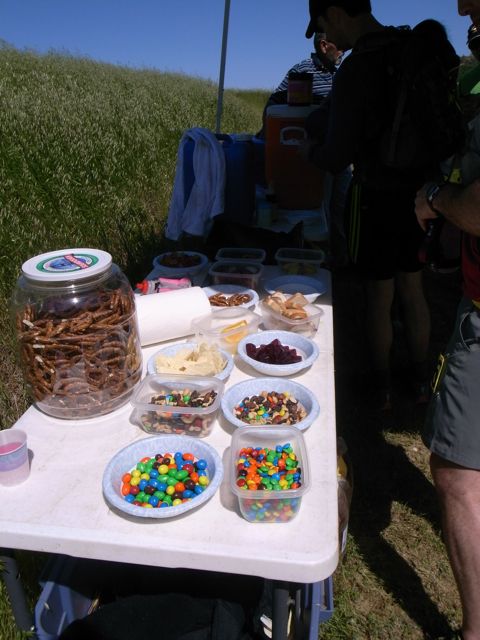 ただいま。人数が少ない分アットホームな感じでスタッフも大会というよりピクニック気分な感じでした。エイドの食べ物はm&mチョコ(アメリカらしい!)、ポテチ、グミ、トレイルミックス、パン(トーストしてくれる!)とジャム、リンゴ、オレンジ、などに加え塩、サプリ(エレクトライトカプセル)があり飲み物は水、スポーツドリンク、コーラ、スプライトと充実していました。