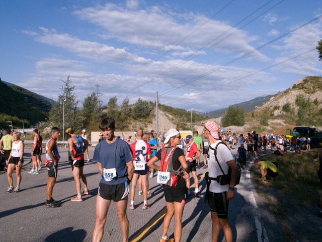レース当日は5時半頃起床し準備をする。朝食は事前に申し込んでいたため宿舎横のレストランでパンとチーズとフルーツ等がビュッフェ形式で提供される。朝食後、荷物をまとめて宿舎を後にして大会のバスで町外れのスタート地点に移動。早速優勝候補のkilianを発見。握手とか写真とかなんてことを考えつつ荷物を預けている間にどこかへと消えてしまった。この日彼を見たのはこの一瞬が最初で最後である。残念。軽く付近をジョグしてから列の後方に並ぶ。海外のレー ス、まったく流れが読めないため控えめの位置取りとしたが、後方ともなると周りの人も大して速そうな感じはしないので勝手に安心した。