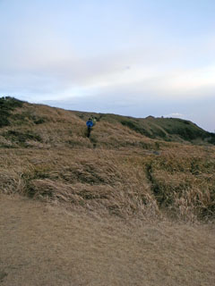 黒崎の鼻へは草原を通っていく。さえぎるもののない海へと向かう丘の上では横殴りの風が凄かった。