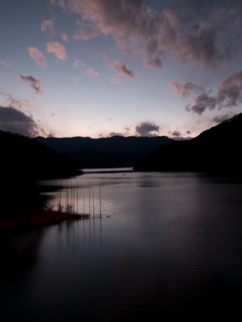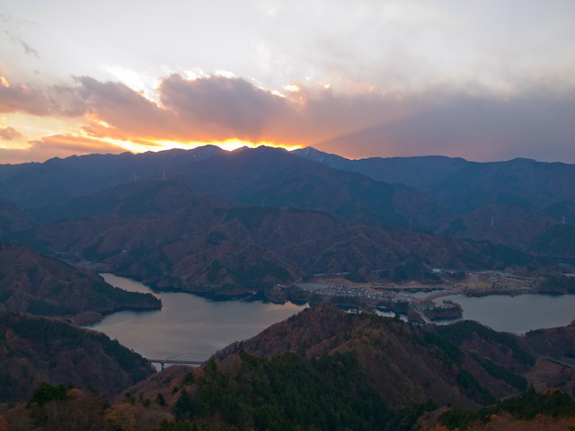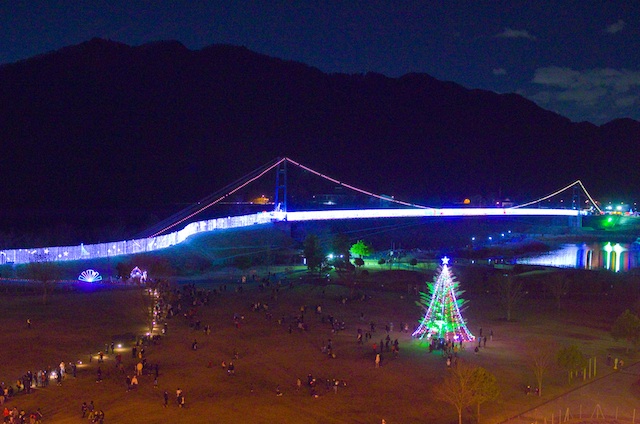 この時期はクリスマスイルミネーションをやっており、湖畔はかなり盛り上がっていた。到着時にほぼ空に等しかった駐車場はいつの間にか満車となり、周辺道路が渋滞するほどの車の数である。山に囲まれた湖でライトアップされたツリーと橋はよく目立つ。下山後はこのイルミネーションを眺めつつさっさと帰路へ。
