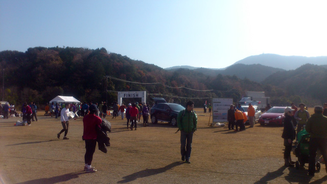 コースのアップダウンについては、藤野駅から陣馬山に登って、南高尾から高尾駅に行くようなコースとでもいったところか。序盤は長い上り、やや下って上るループを通ってから激下りがあり、そこで渡渉をしてからの登り返しと小刻みなアップダウンが脚を休ませてくれない。トレイルからロードに出て600mでゴールということだったが、山の中の延々と下る林道のような雰囲気を醸し出しており、本当か?と疑いたくなるが、間もなく視界が開けるとゴールゲートが見える。優勝者が1時間40分をやや切ったくらいで、完走者のタイムを見ていると陣馬山トレイルレースと比較的似ているようだ。高い山があるわけでもないのでその通りだが、こちらの方が上りは長いし、下りも激下り、そして上り返しまであることを考えると、3キロの差はタイム的な違いとならないのかもしれない。