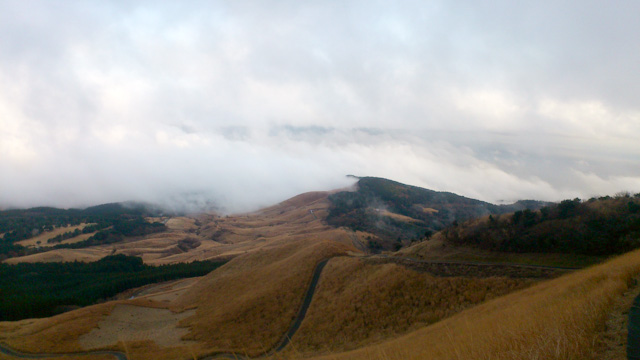 初日は修善寺駅からバスで移動して天城峠から天城縦走路を走り、八丁池手前の分岐から海へと進路変更し、三筋山を通って伊豆稲取の駅に抜けるルート。分岐では後続を待つために止まるが、止まると冷えるので休憩らしい休憩は少なくさくさくと進む。集合場所の修善寺では土砂降りの大雨だったが、バスの移動中に雨もほぼ止み、レインウェアなしでも問題ない天気だった。霧が立ちこめる森は幻想的であり、天城峠近辺に来るのは3回目だったが、これまでとは違った趣のある森の景色を楽しむ事ができた。ゴルフ場に下りて来たところで雲の切れ間から海が見えてテンションも上がる。その後、また深い霧の中に入り、ロードを走って伊豆稲取駅へ。23キロ、急なアップダウンがなく走り易いコースだった。