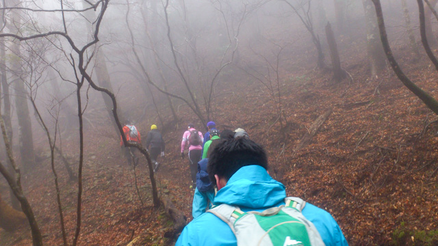 初日は雨上がりの霧の中を天城縦走路へ
