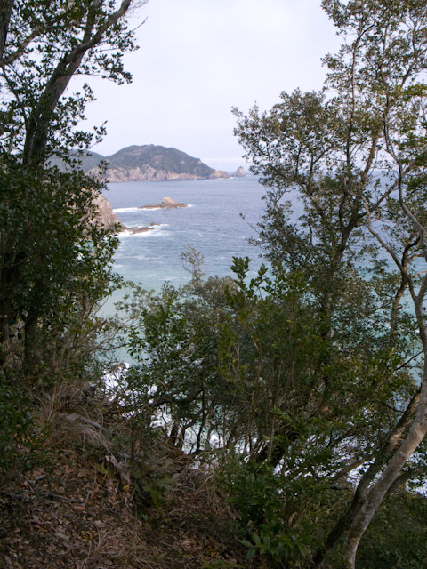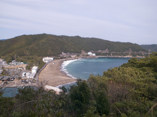 上ったら下りる、遠くに日和佐の町が見える。そして下りたら、、、
