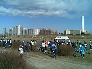 会場に着いてみると、河川敷で風よけがないせいか強風吹きすさび、自転車はことごとく倒れているし、何しろ寒い。しかし、ゆるい運営ながらガチランナーからゆるランナーまで近隣のランナーが集まるこのレース、ランパンランシャツの猛者達も多数いる。やはり月一で定期的に開催されているし、レベルを問わず自分の実力を確認できる、そして当日参加という気軽さがこのレースの魅力なのだろう。