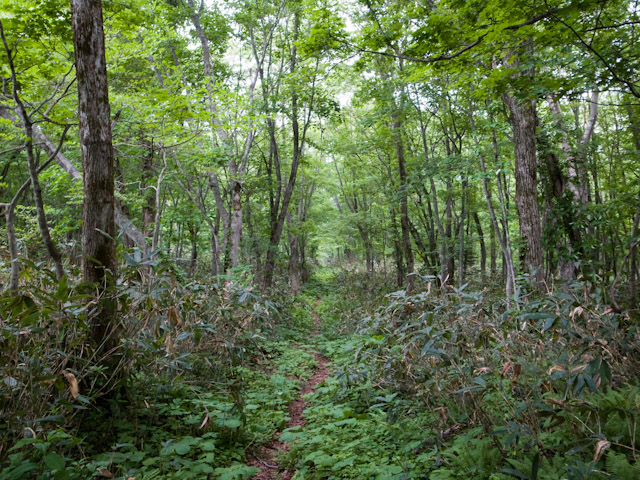 かなり下ってきたところで前方からコロコロの体型をした動物がやってくる。薄暗くて顔がはっきり分からなかったが、タヌキのようであるし、クマのような気もする。もし子グマであれば、近くに気が立って攻撃的な母グマがいることを意味する。とりあえず15メートルくらい離れていたが、あっち行けと声を掛けたら回れ右して去っていった。問題は、一本道なので当然のことながら後を追う方向に進まなければ帰れないということである。下りであるが走らず周囲に気をつかって慎重に、咳払いしたり鼻歌を口ずさみながら進む。そして、車を停めた登山口まであとわずかというところでまだ新しい糞を発見する。行きに見た干からびた糞の上である。クマ以外にそれなりのボリュームの糞をする動物がいるのだろうか?襲撃に怯えつつも何とか駐車場に帰還。とにかく北海道にはどこでもヒグマが出るということだ。