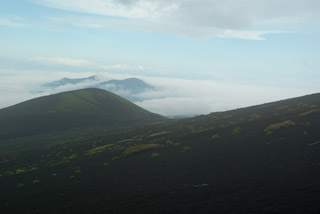 下りは宝永山の火口と頂上を経由して下る。初めて大砂走りを体験。昨年須走から往復したときにも下山堂をミスコースして砂走りを通っていないのでこういうところ自体初めてである。スキー場を彷彿とさせる斜面をざくざくしながら走り下りて行く。しかし、スキーのゲレンデよりも圧倒的に広いスケール感がすばらしい。6合目あたりから5合目は雲の隙間で丹沢や箱根、愛鷹山などが雲海から顔を見せているのを見渡せ景色が良かった。ただ荷物が重かったのと砂で走るのにやや不快な部分もあったが。晴れ渡った日(御殿場側でどれだけ期待できるかは微妙だが)に海へと向かって7合目から一気に大砂走りを駆け下りるのはどんなに気持ちがいいだろう。。。