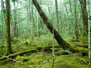 苔の絨毯が敷かれた森