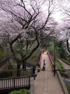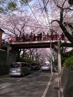 桜坂の桜橋には見物客が溢れていた