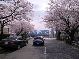 桜並木の先には丸子橋